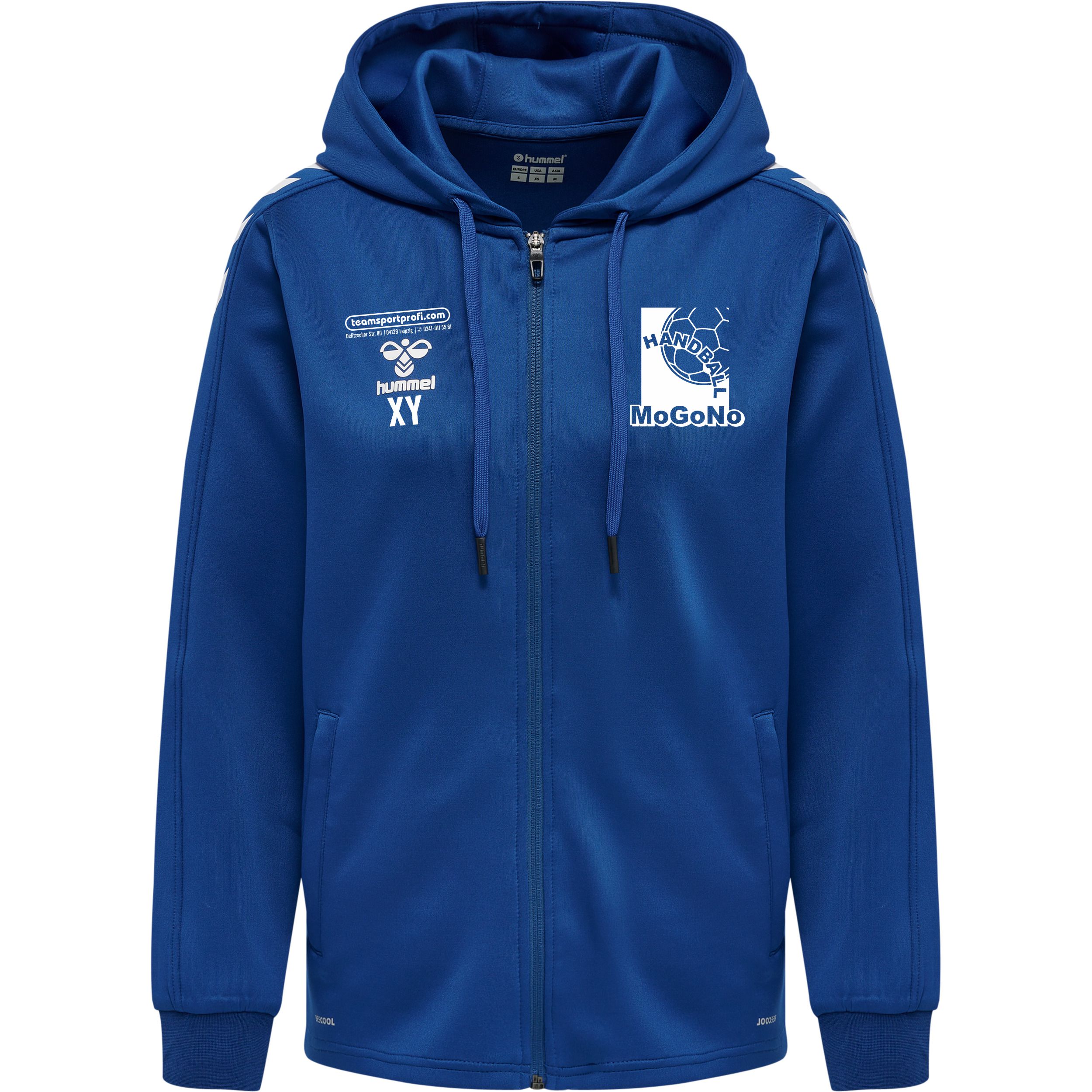 des Trainings für ein kühles Tragegefühl. Der Frontreißverschluss und die Kapuze mit Kordelzug
